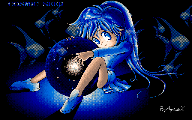これは某ComputerFanに寄稿するために描いた作品です。それなりに 気合いれたんですけど、後からみるとさして面白い絵でもありませんね ・・・・。中心からのボウッとした光の雰囲気が出したかったんですけ どね。女の子の服が僕がこういうのしか描けないとはいえ単調すぎて悲 しいです・・・ダウンロードサイズ 42Kbyte (640×400)